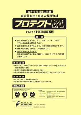 農場の入り口、畜舎周辺の土壌などに粉末の状態で直接散布使用もできます。粉末の飛散が気になる方は粒子の粗い散布用ドロマイト系石灰のプロテクトVAをお勧めします。