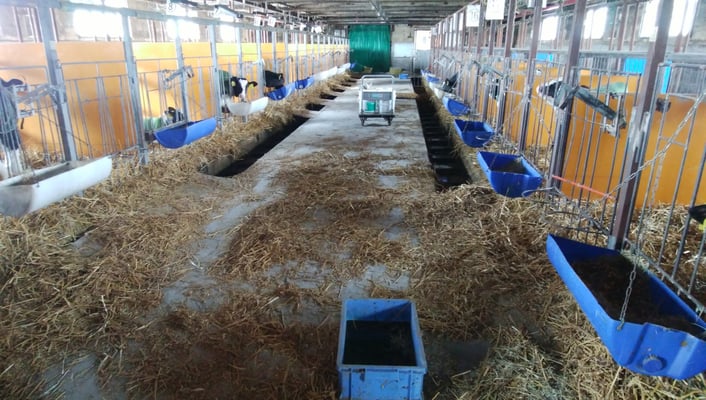 こちらの牧場様では石灰を牛舎内で使っているため、ウィンターベッセルサニーアルカリをご使用いただいております。踏込槽設置場所は処理室入口、牛舎入口、哺乳牛舎入口です。